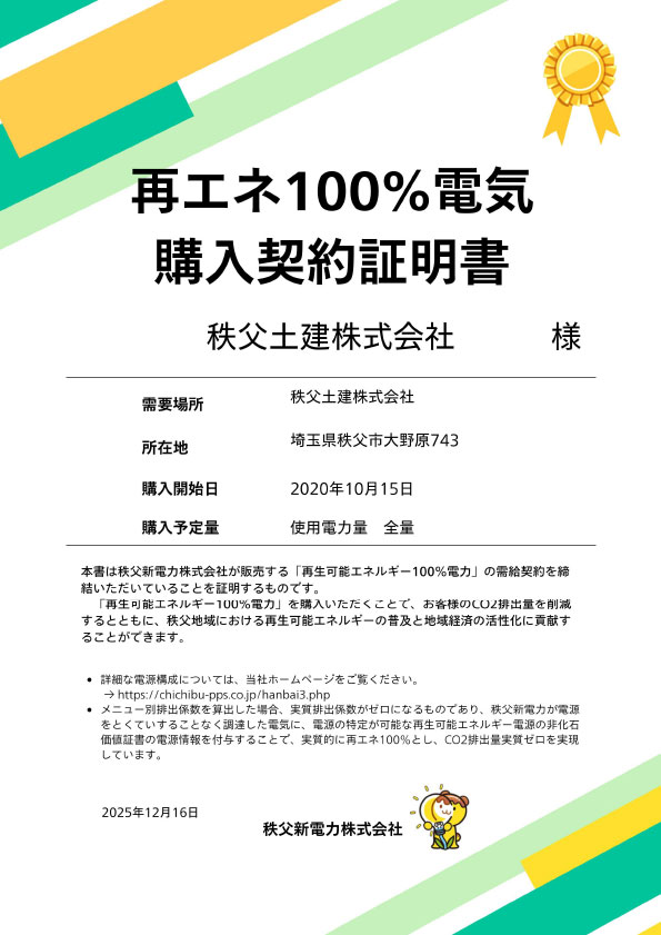 また、秩父土建株式会社は、埼玉版 働き方改革の趣旨に賛同し多様な働き方を推進します。